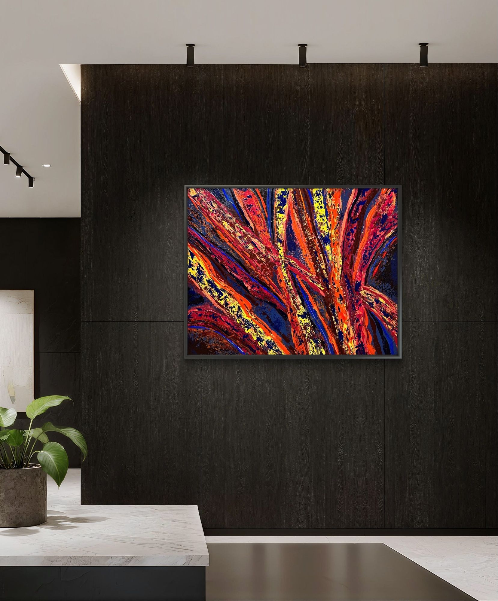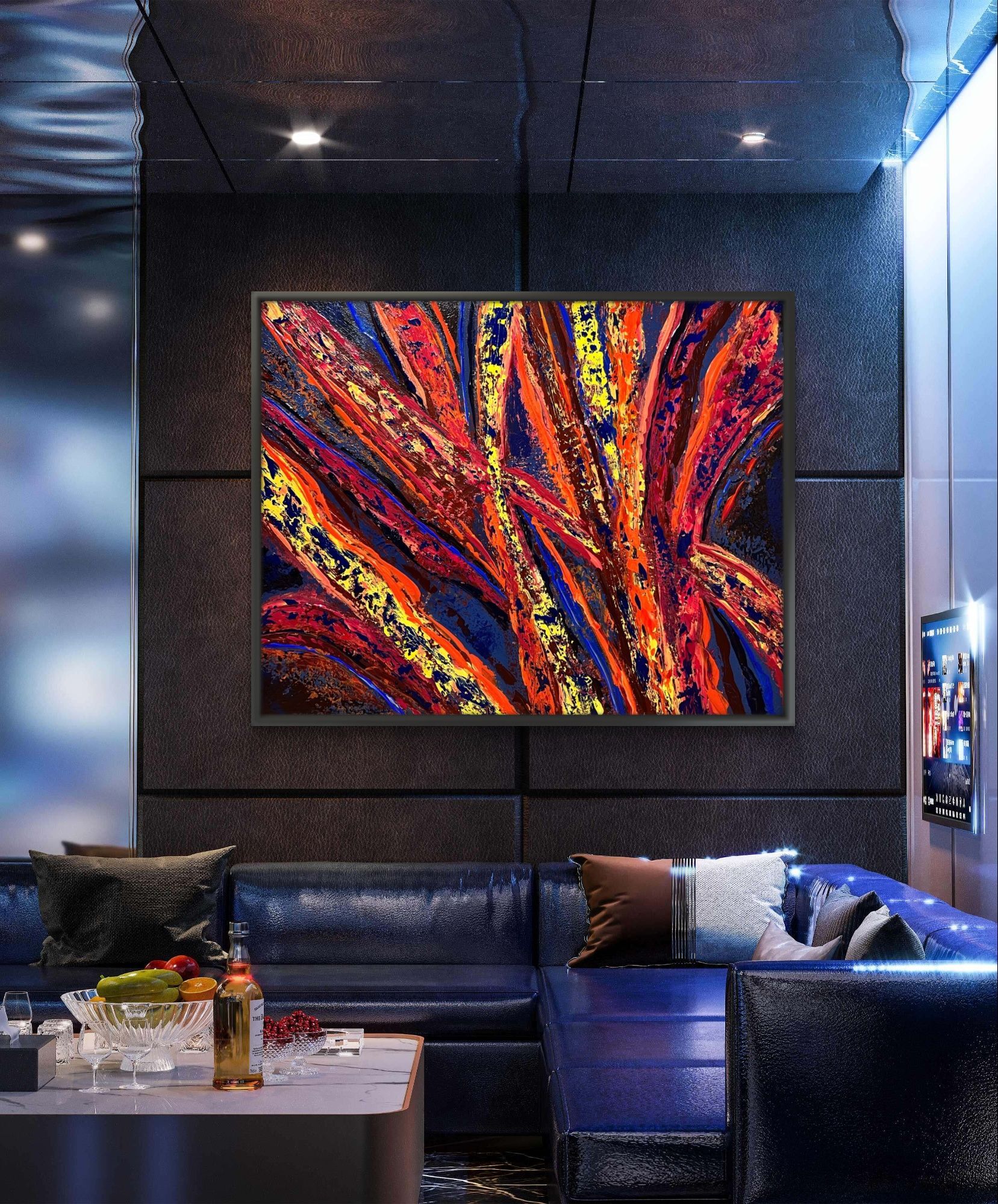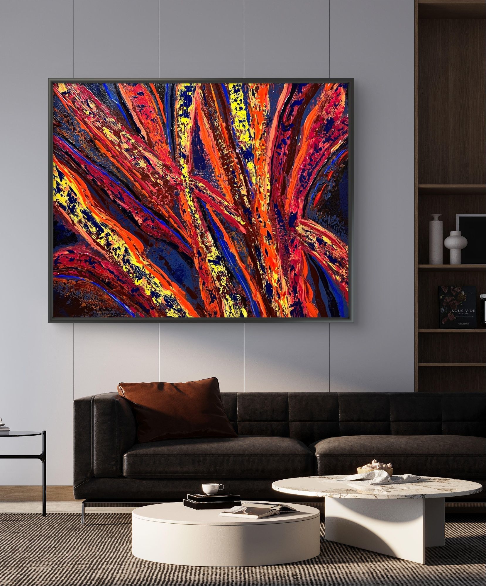 The colors chosen are not merely bold and bright; they make an audacious statement that commands attention on any wall. This piece may not cater to everyone's aesthetic preferences, but its vivid palette is impossible to ignore, ensuring that it leaves a lasting impression. The artwork invites viewers to not only observe but to feel, making it a true conversation starter in any space.